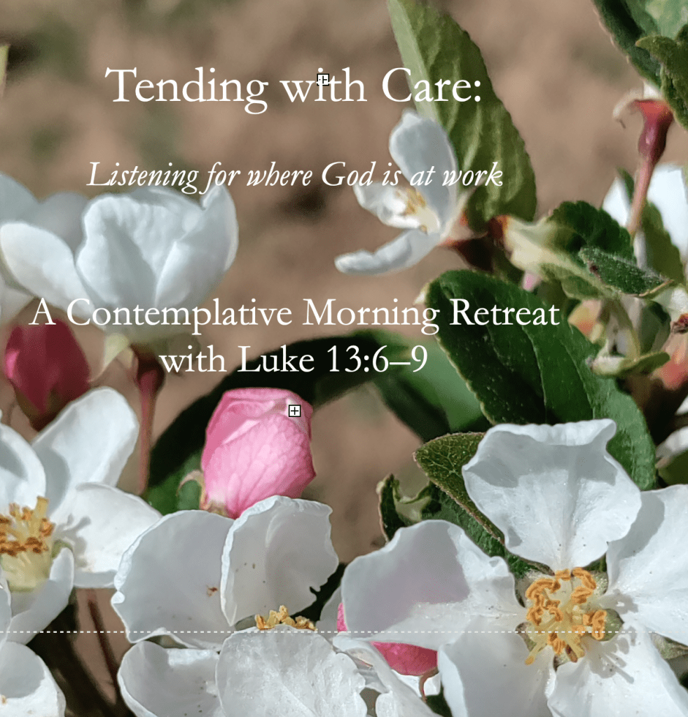 Retreat Includes: Guided reflections on Luke 13:6-9, times of silence and spaciousness, optional creative engagement. Refreshments provided.
